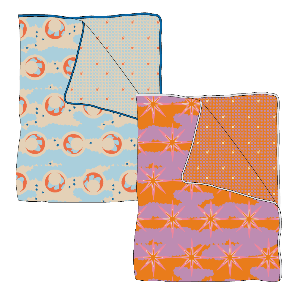aria mills, moonlight & sunshine; original repeat print and colorways developed to spec